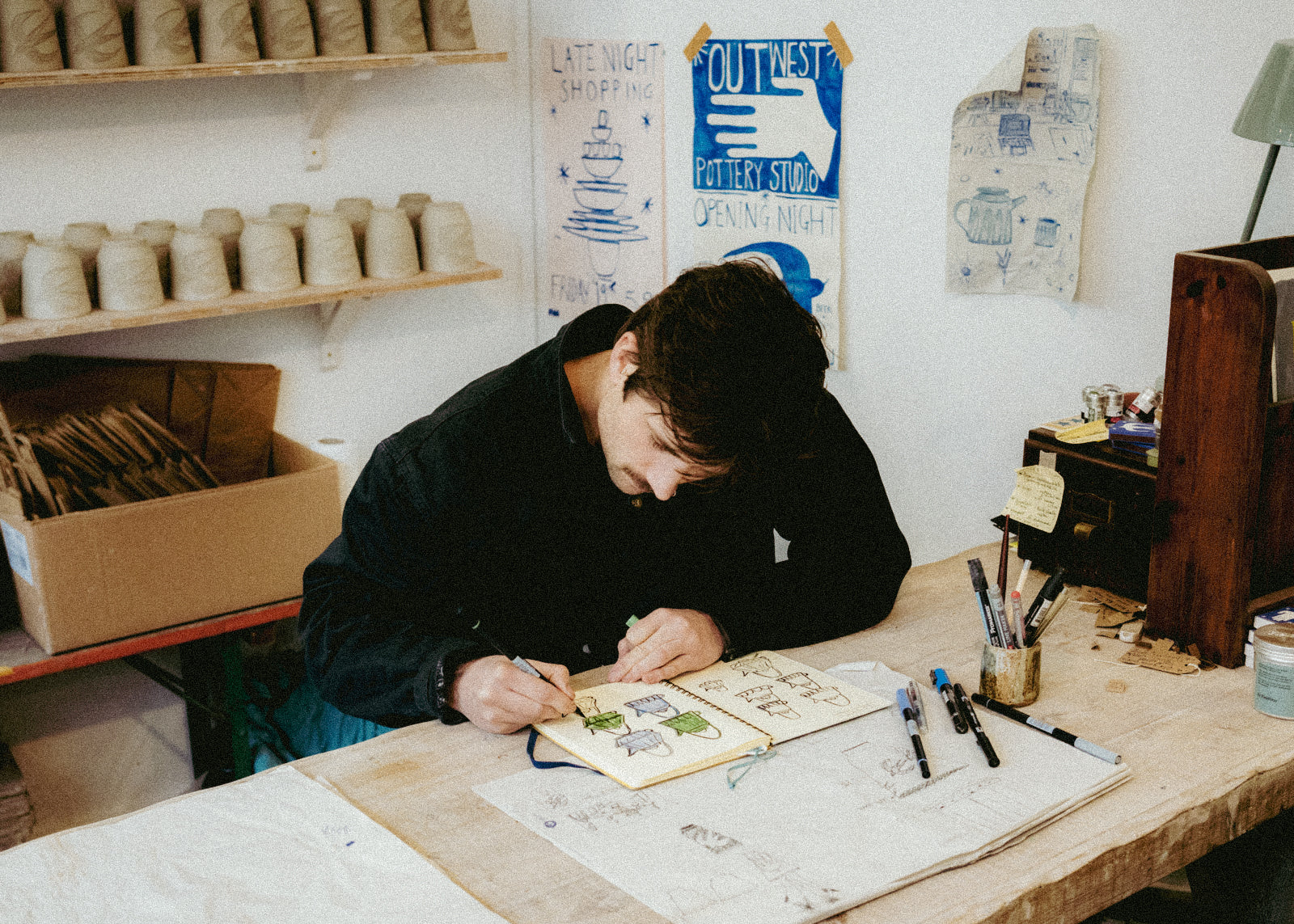 Out West Studio has really become more than just a ceramics practice, it’s an outlet for all the creative threads that have followed him over the years. Architecture’s structure, design’s function, film’s storytelling. All working together rather than competing for space.