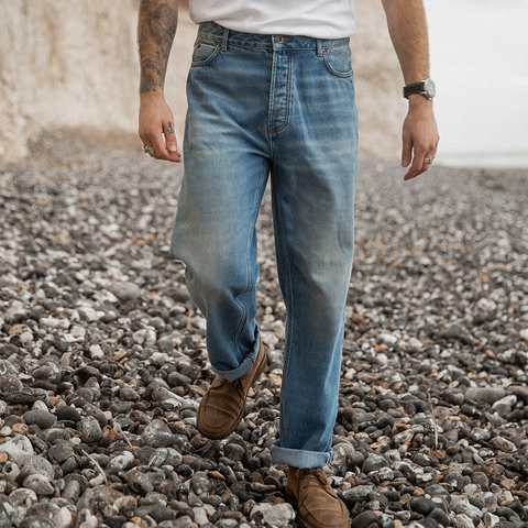 Resilient at heart. Our men's denim is built to last. Featuring classic jeans and jackets, our denim pieces are durable & comfortable. From worn selvedge woven on vintage looms to custom fabrics, our denim options ensure you have a style for every occasion.