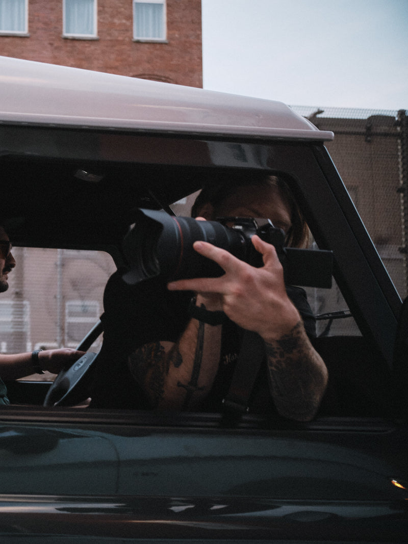 On the first day of shooting, the team hit the streets with a Land Rover Defender that we chose from the guys at Brooklyn Coachworks - a subtle nod to our British roots amidst the unmistakably American surroundings. The mix felt right; both timeless, rugged, and built to last.