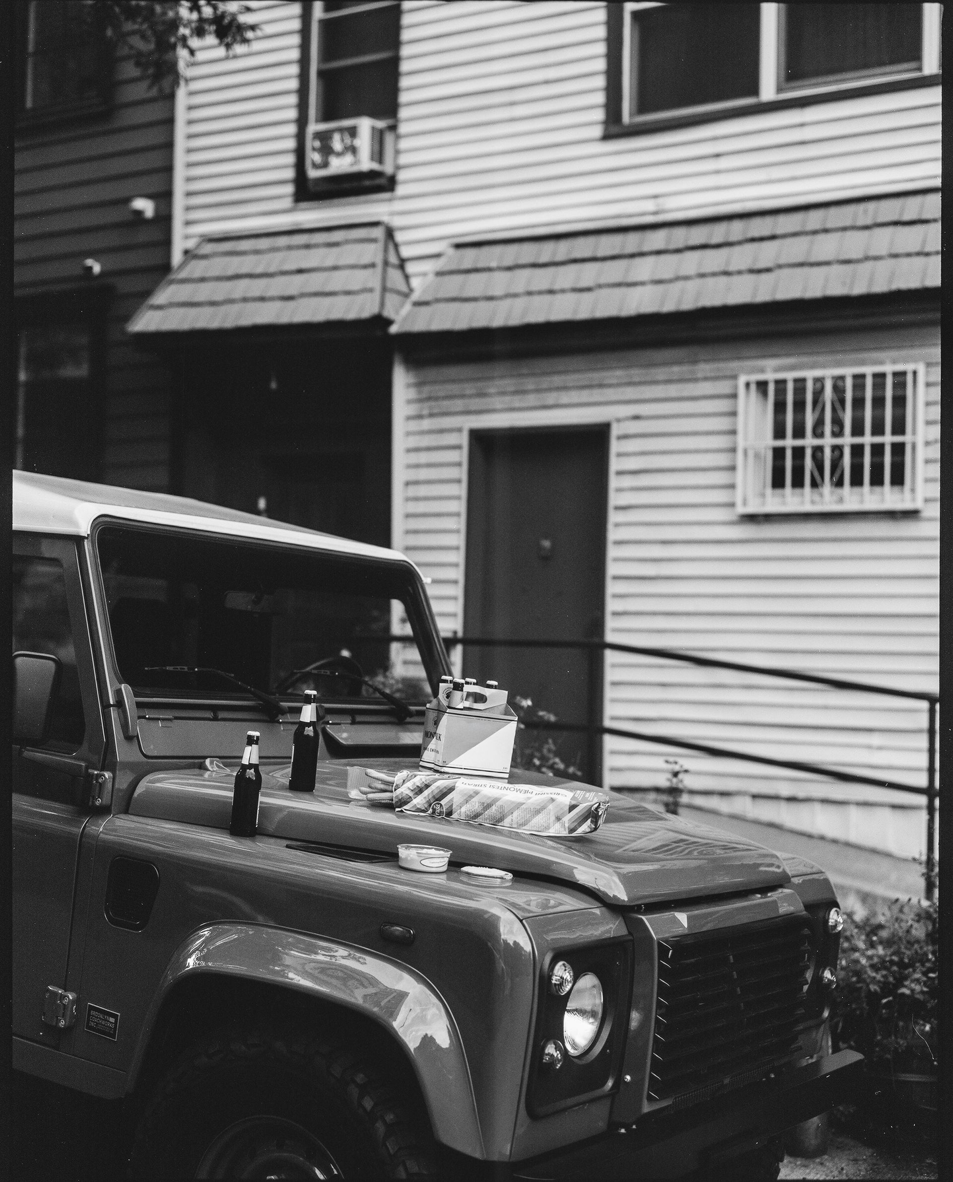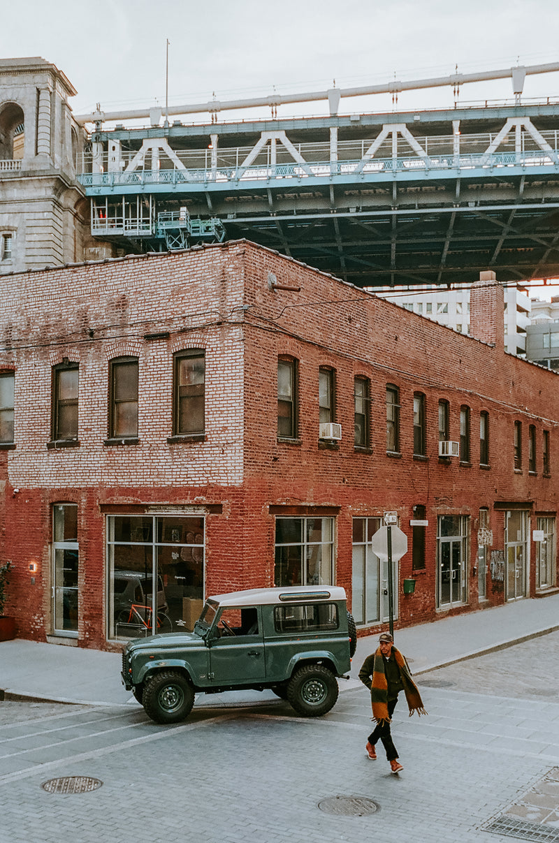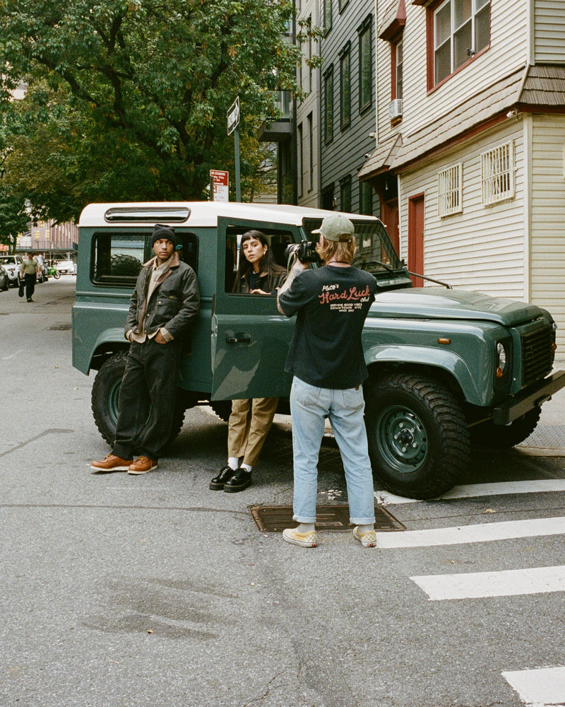 The shoot was full of memorable moments. At the end of the first day, the team piled into the Defender, listening to BadBadNotGood, weaving through Brooklyn streets as the sun sank behind the skyline. They made it to a friend’s rooftop with just minutes of light left, a moment that perfectly captured the city’s magic and the mood of the collection.