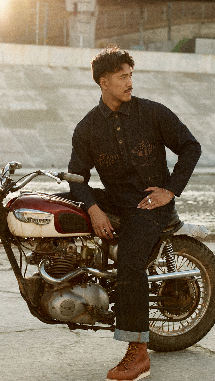 Hailing from Birmingham’s creative heartbeat, the Jewellery Quarter, the brand has been built in a place synonymous with quality. Its historic, hardworking & hard-wearing attitude continues to fuel our passion for creating clothing that will stand the test of time. Inspired by vintage Americana, a sense of craft and an attention to detail to match it, the brand strives to make icons in the making.